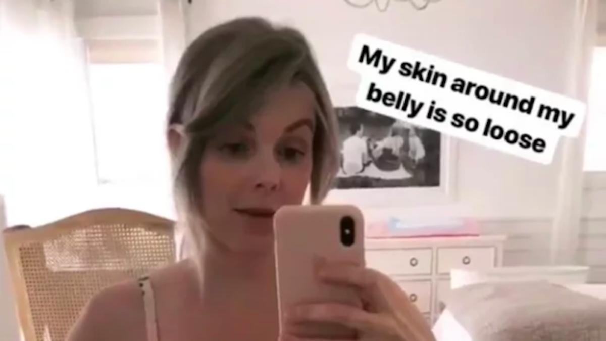 The blogger also shared to her Instagram Story, revealing the “extra fat” and the “loose” skin around her belly, admitting she was “so nervous” to do so and writing, “This is what my body really looks like and I am okay with that. I LOVE my body!”